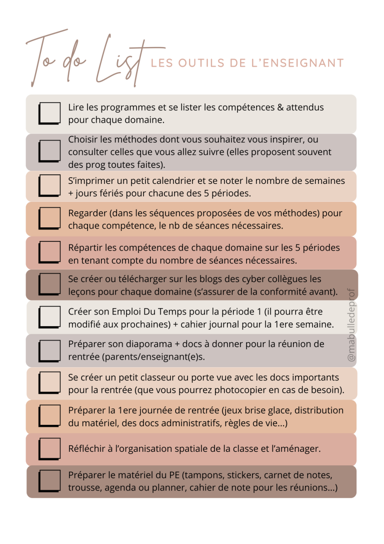 Tout d’abord, rédige ta TO-DO LIST ! Si tu as la flemme (ce que je peux totalement comprendre), voici celles que je te propose :